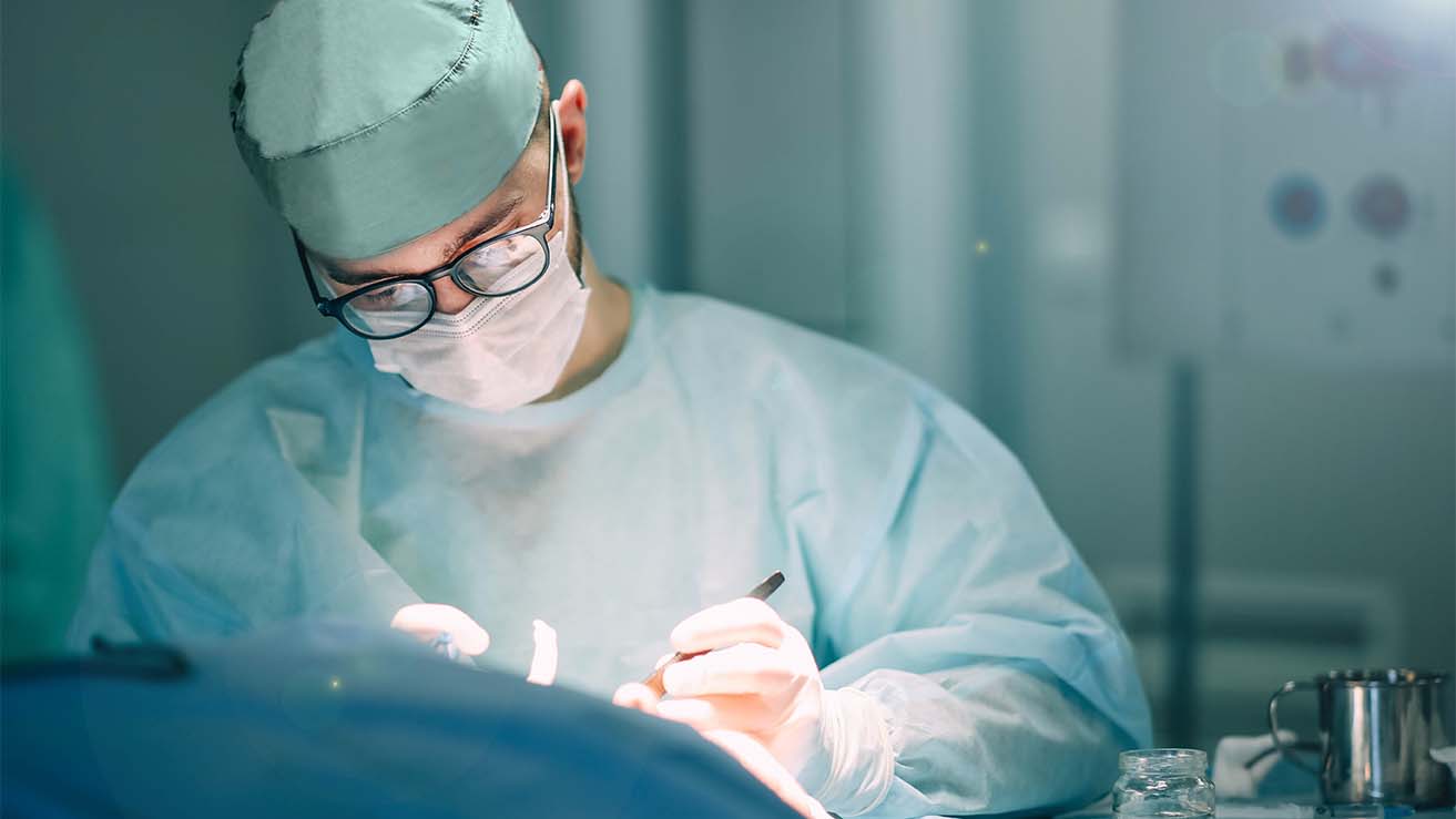 Ein Arzt operiert mit einem Skalpell an einem Patienten.